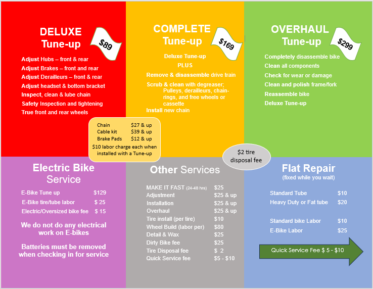 Getting the right service doesn’t have to be complicated. Our mechanics are trained to evaluate your bike service needs. We strive to understand you and your bike. No job is too big or too small for our staff. When you bring your bike in we will check it over and give you a free estimate of what the repairs will cost. You are under no obligation.